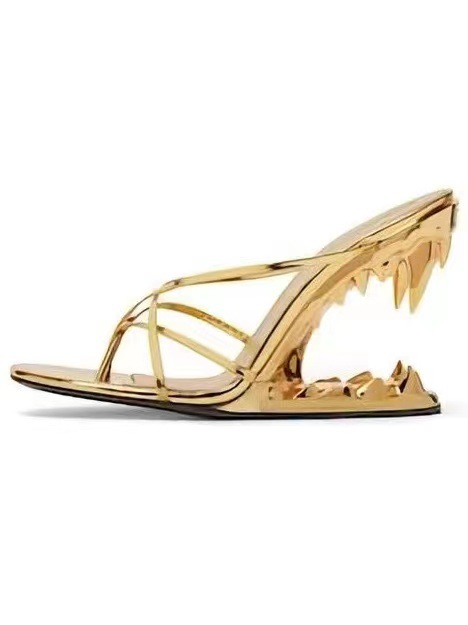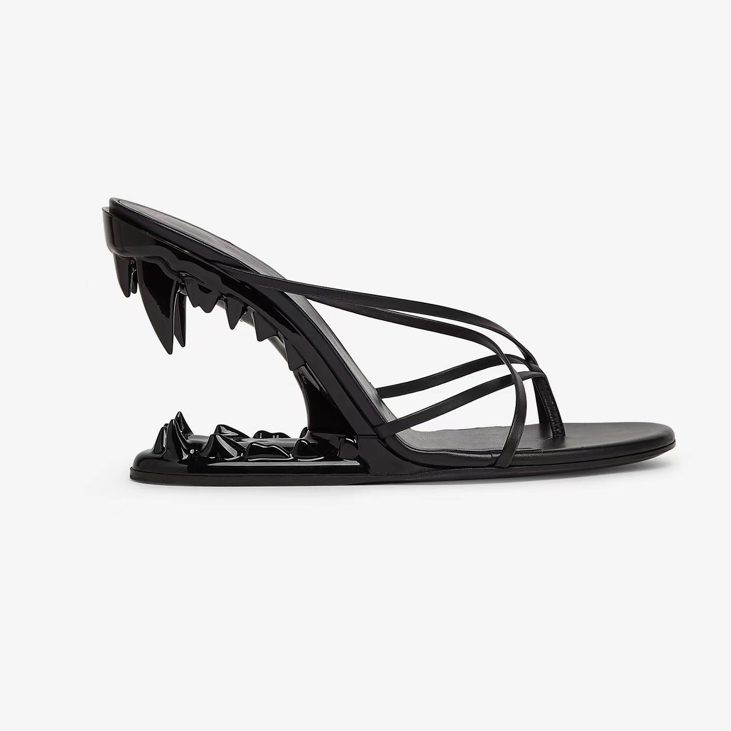 صندل كعب عالي نسائي بتصميم أسنان وعقبة شفافة