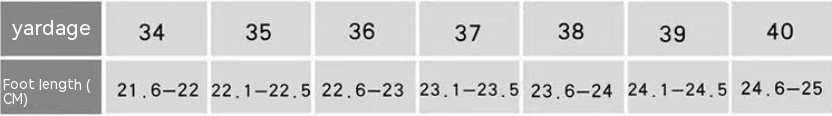 المقاسات: 34 مقاس قياسي، 35 مقاس قياسي، 36 مقاس قياسي، 37 مقاس قياسي، 38 مقاس قياسي، 39 مقاس قياسي، 40 مقاس قياسي